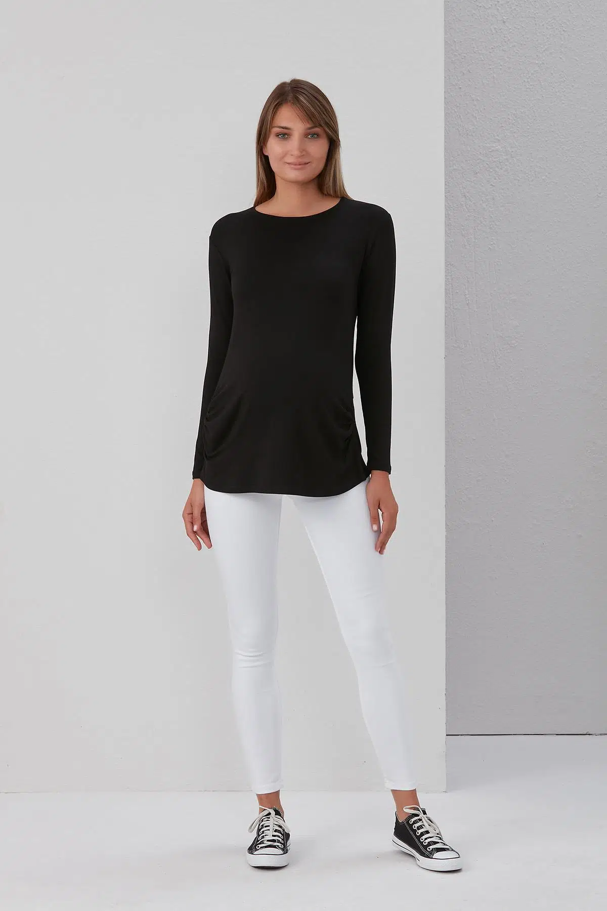 rahat, esnek, yumuşak dokulu viskon kumaşı ile anne ve bebeği için sağlıklı bir kullanım sağlıyor, mevsimlik kullanıma uygun uzun kol olarak tasarlanan model, hamilelik süresince ve sonrasında da kullanabileceğiniz t-shirt modeli...