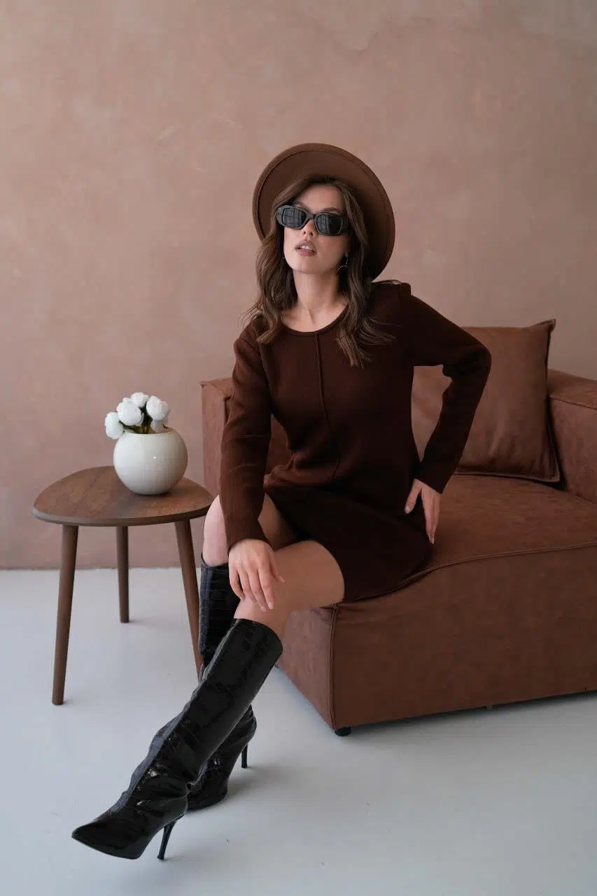 Sıfır Yaka OverSize Triko Mini Tunik-Elbise