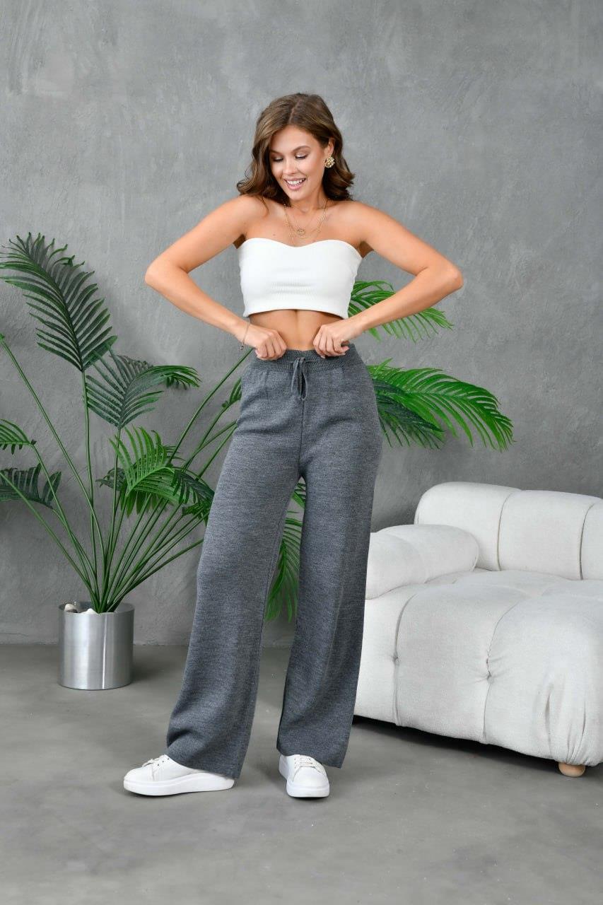 Fitilli Örme Palazzo Triko Pantolon