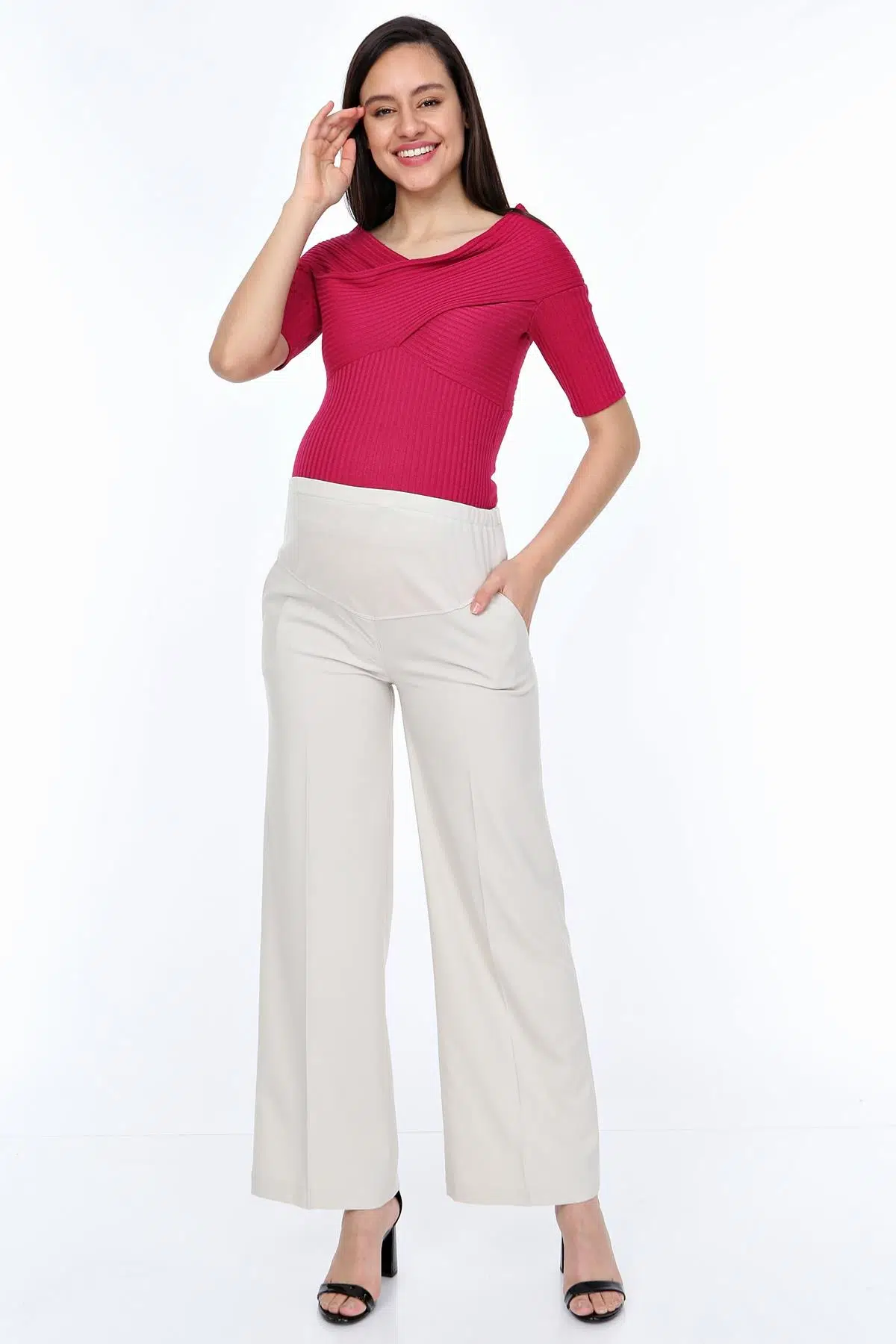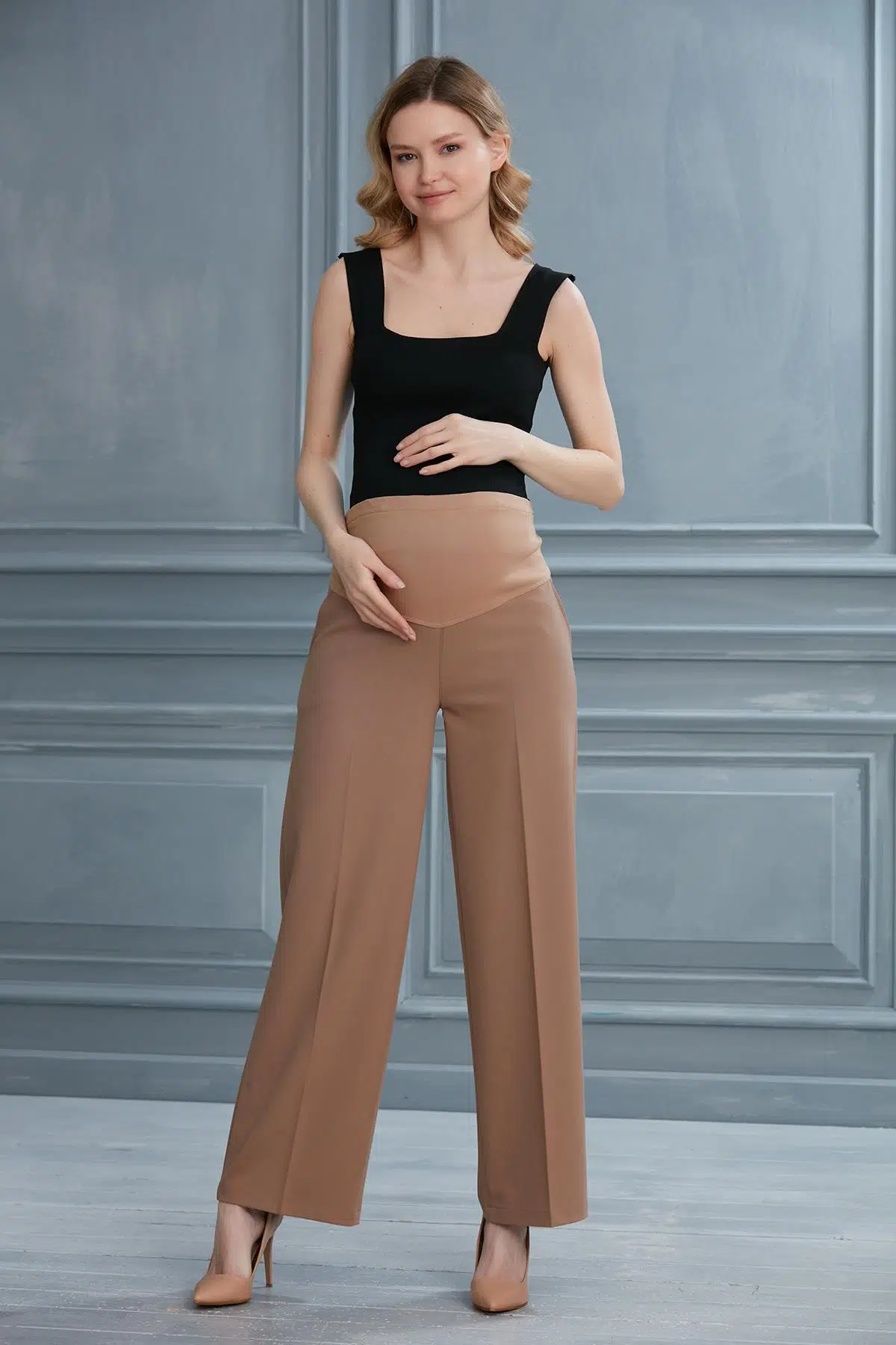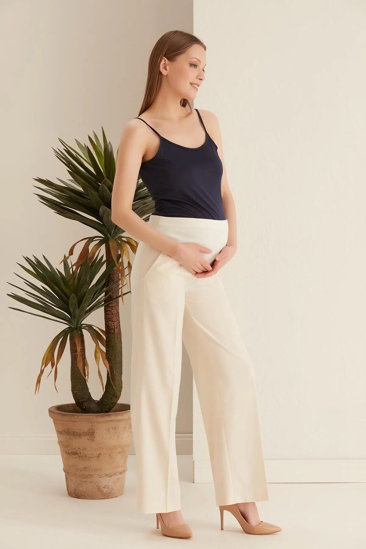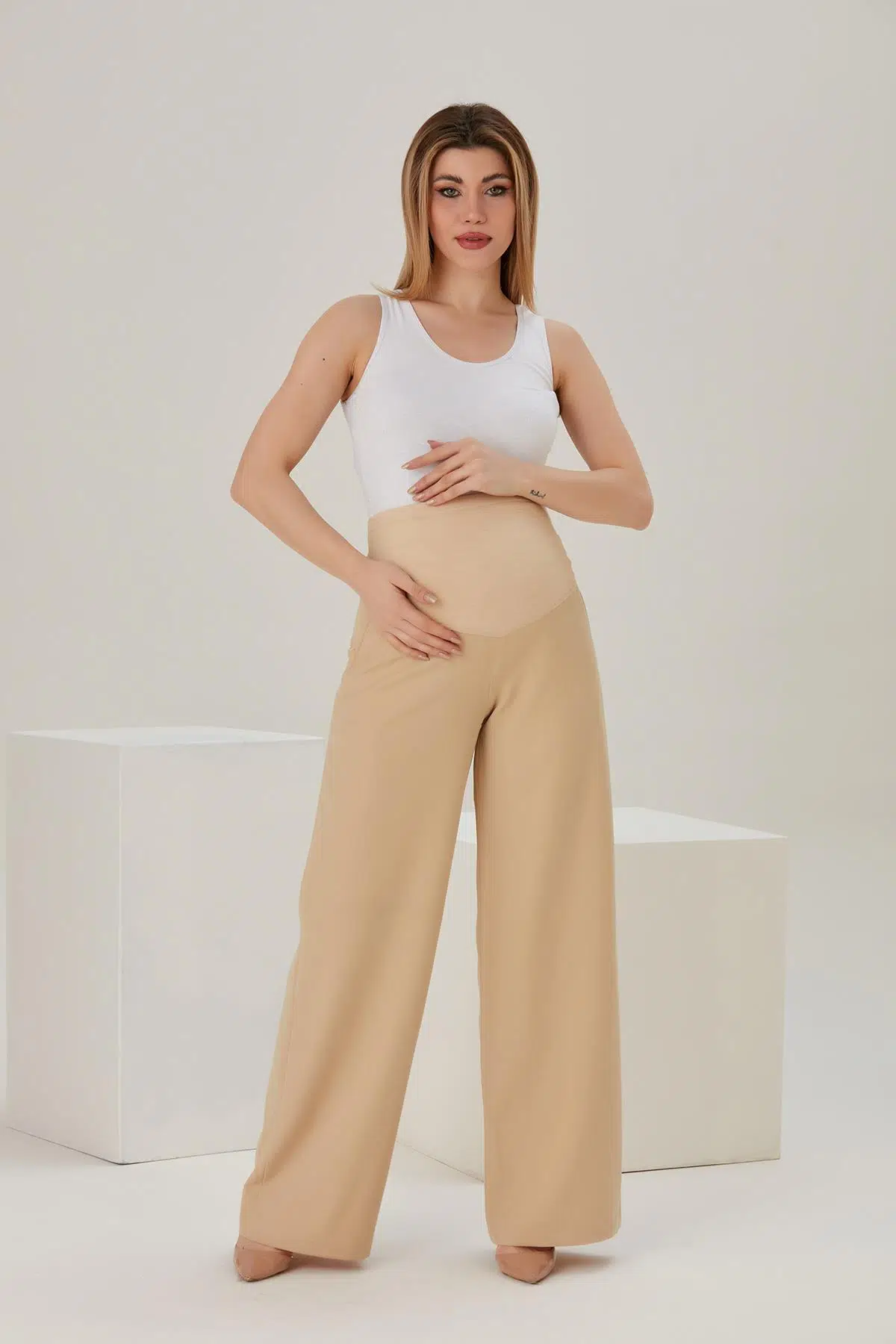 hamile bol paça kumaş pantolon; rahat ve esnek bir kumaştır, basenden bol paça (palazzo) kesimi ile kusursuz bir duruşa sahiptir. Hamileliğiniz boyunca ve sonrasında kullanabileceğiniz tasarımlar