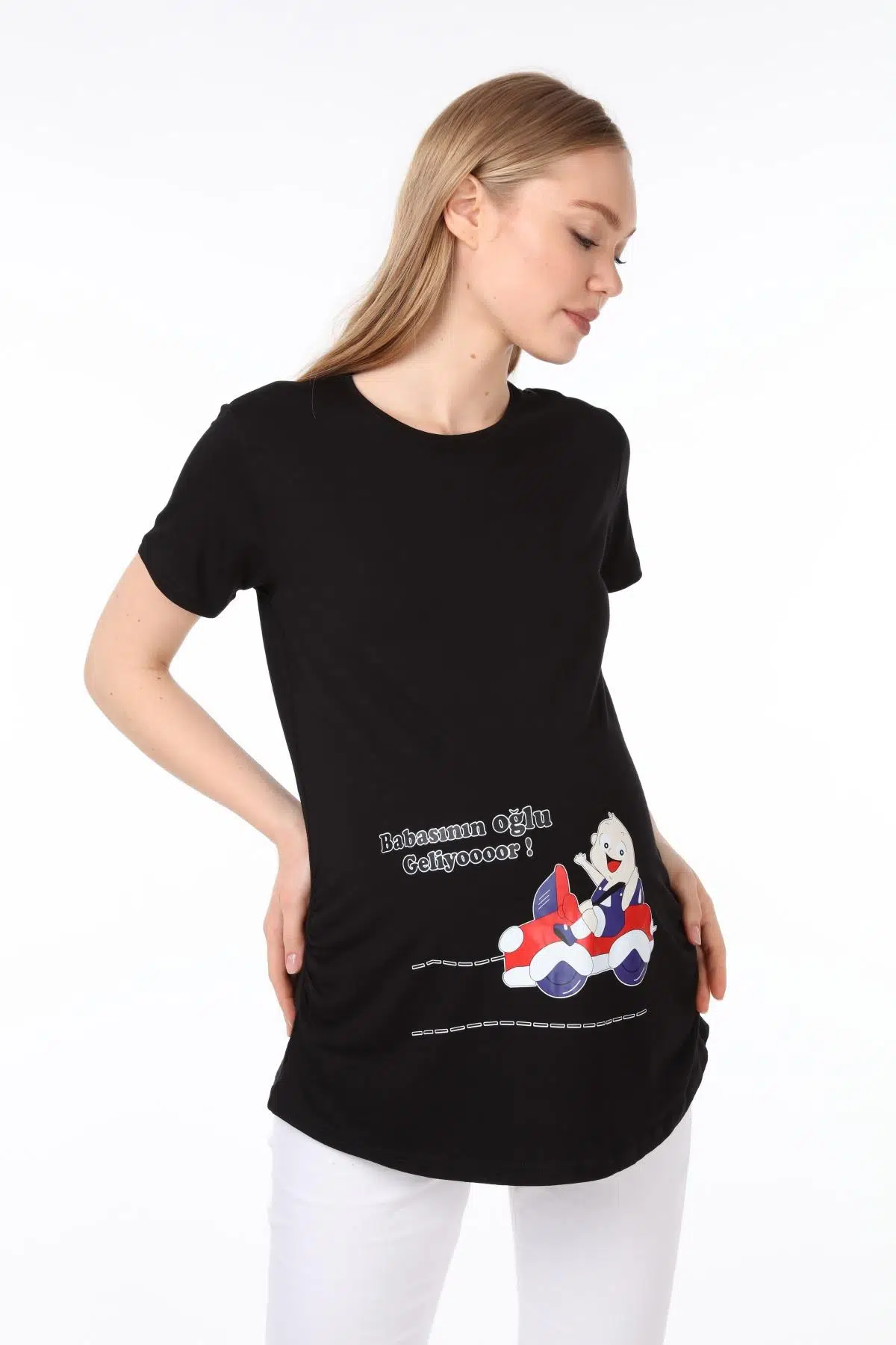 | Etiketler | 4474-Babasının Oğlu Geliyoor Viskon Hamile Kısa Kol T-Shirt |
