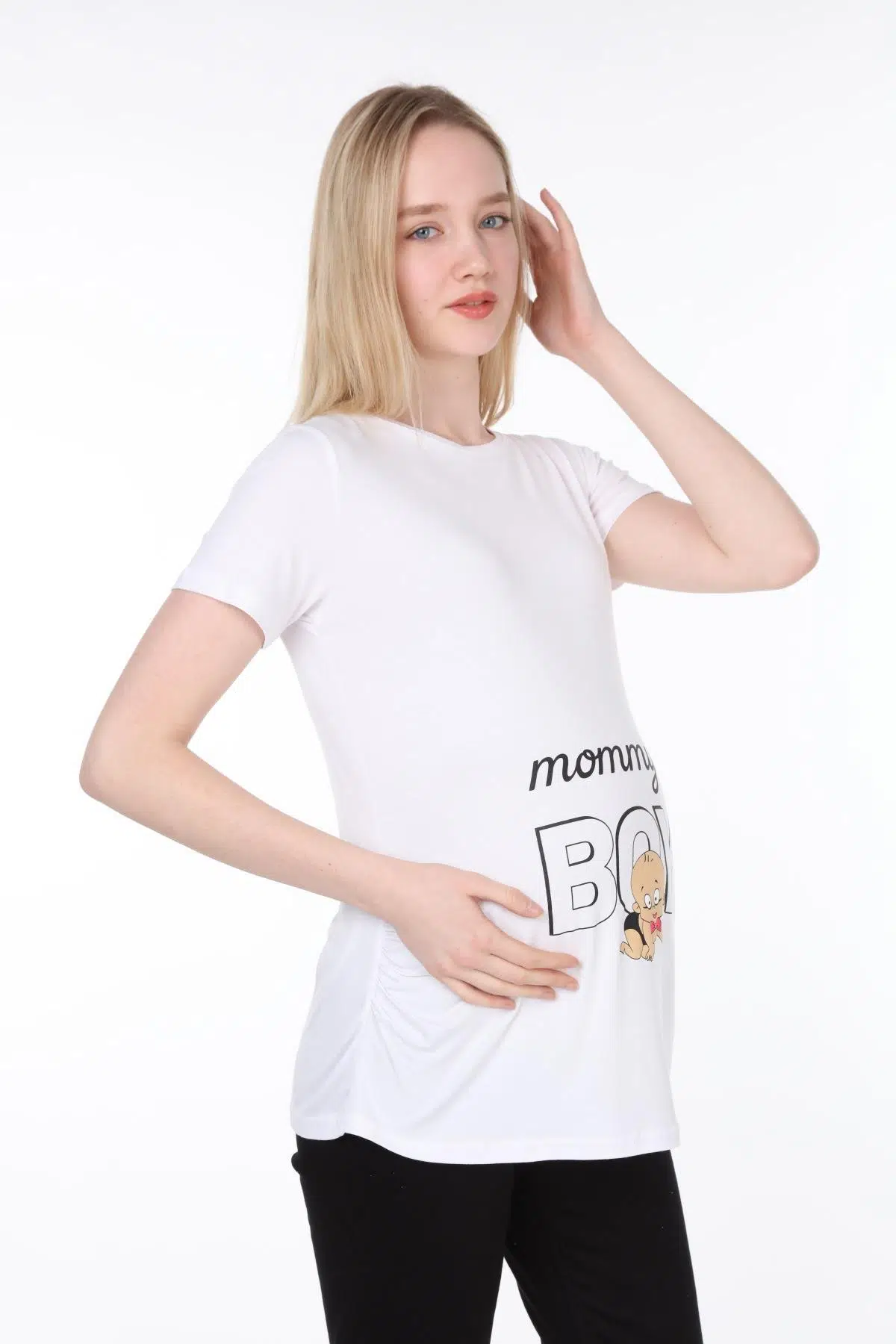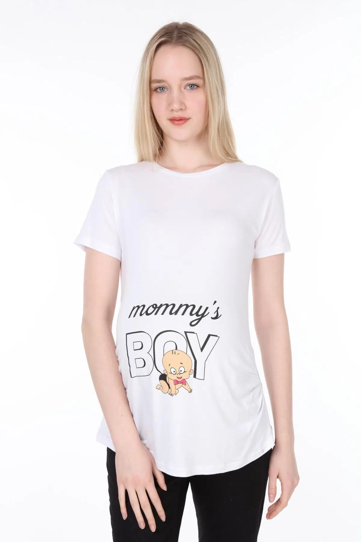 Erkek bebek bekleyen hamile anneler için üretilen tasarım t-shirt daha oğlunuz doğmadan annesinin oğlu olacak