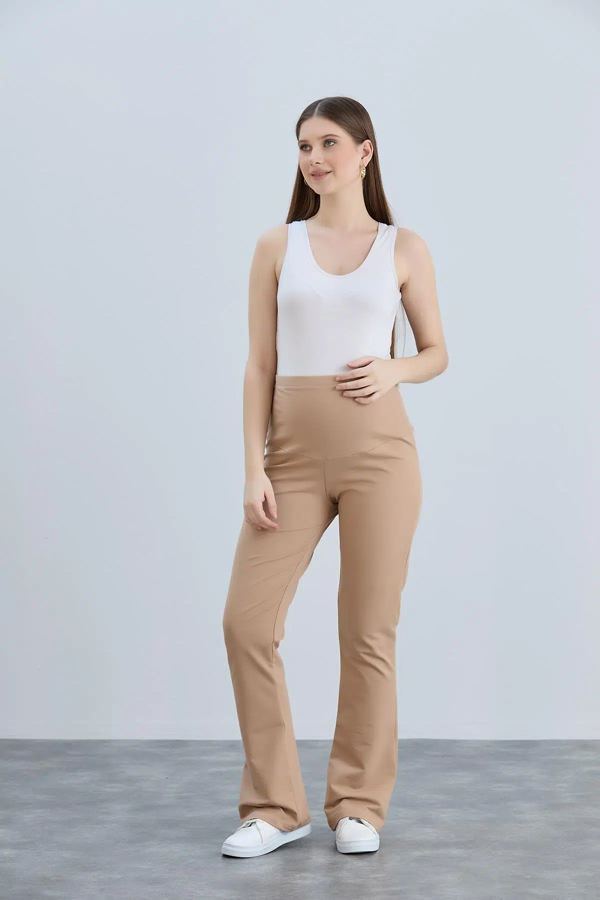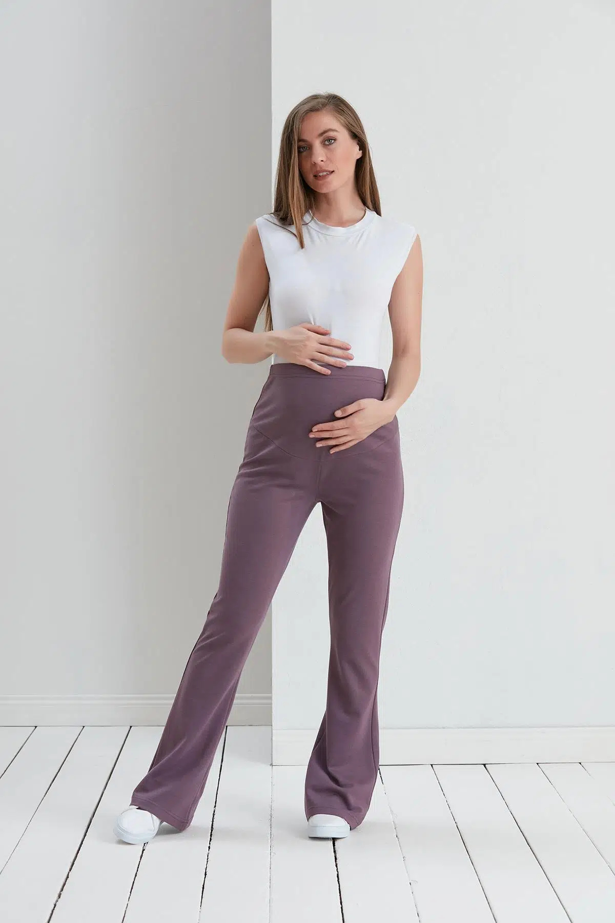 yumuşak dokulu iki iplik penye kumaşı ispanyol paçası, rahat kesimi ile anne adaylarının hamilelik süresince ve sonrasında da rahat kullanabilecekleri bir tasarım...
