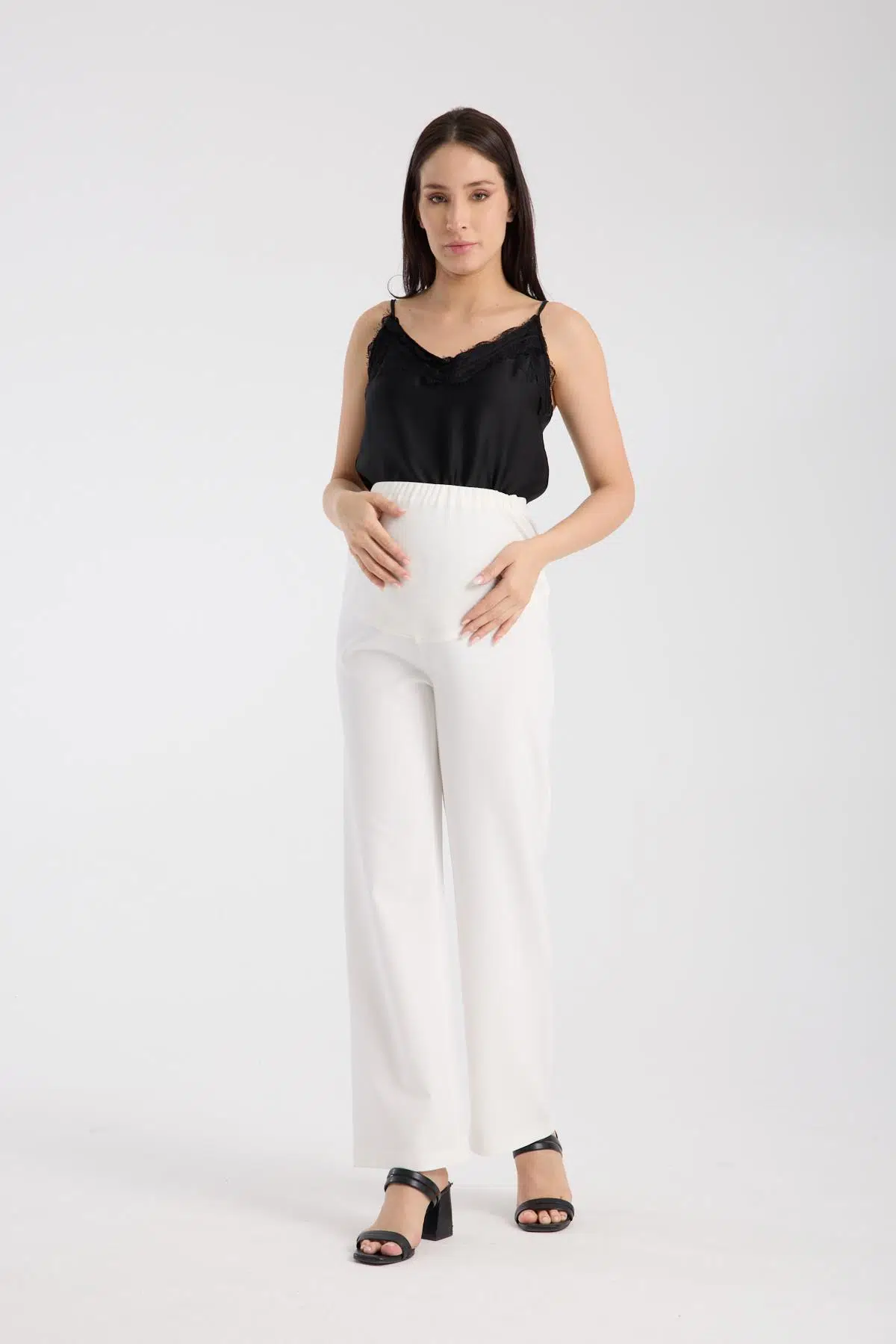 - Yüksek bel tasarımı sayesinde karın bölgesini nazikçe sararak hamilelik döneminde konforlu bir kullanım sunar. - Esnek yapısı ile vücut hatlarınıza uyum sağlayarak rahat hareket etme olanağı tanır. - Krem rengiyle şıklığı ve zarafeti ön plana çıkaran bu pantolon, günlük giyimin vazgeçilmez parçalarından biridir. - Bol paça kesimi sayesinde bacaklarınızda ekstra genişlik hissi bırakmadan özgürce adım atmanızı sağlar. - Viskoz karışım materyali cildinizle dost dokunuşlar sunarken, polyester ve elastan bileşenleri esnekliği artırarak gün boyu rahatlık sağlar. - Günlük kullanım için ideal olan bu pantolon, hem evde hem de dışarıda keyifli anların vazgeçilmezi olabilir. - İthal malzemelerden üretilmiş olmasıyla kalite standartlarına uygunluk gösterirken, yerel üretim avantajıyla da desteklenmektedir. - Cepsiz yapısı pratiklik kazandırırken bol paça detaylarıyla modern bir görünüm sergiler. - Sade ve düz deseniyle kolayca kombinlenebilir; farklı üst giyim seçenekleriyle uyumu kolaylaştırır. - Düz silueti sayesinde her tür ayakkabıya mükemmel şekilde eşlik ederken, straight fit kesimiyle zamansız bir tarz sunar. - Sürdürülebilirlik bilinciyle üretilmiş olup çevre dostu malzemeler kullanılarak imal edilmiştir; böylece doğaya duyarlı tercihler yapmış olursunuz.