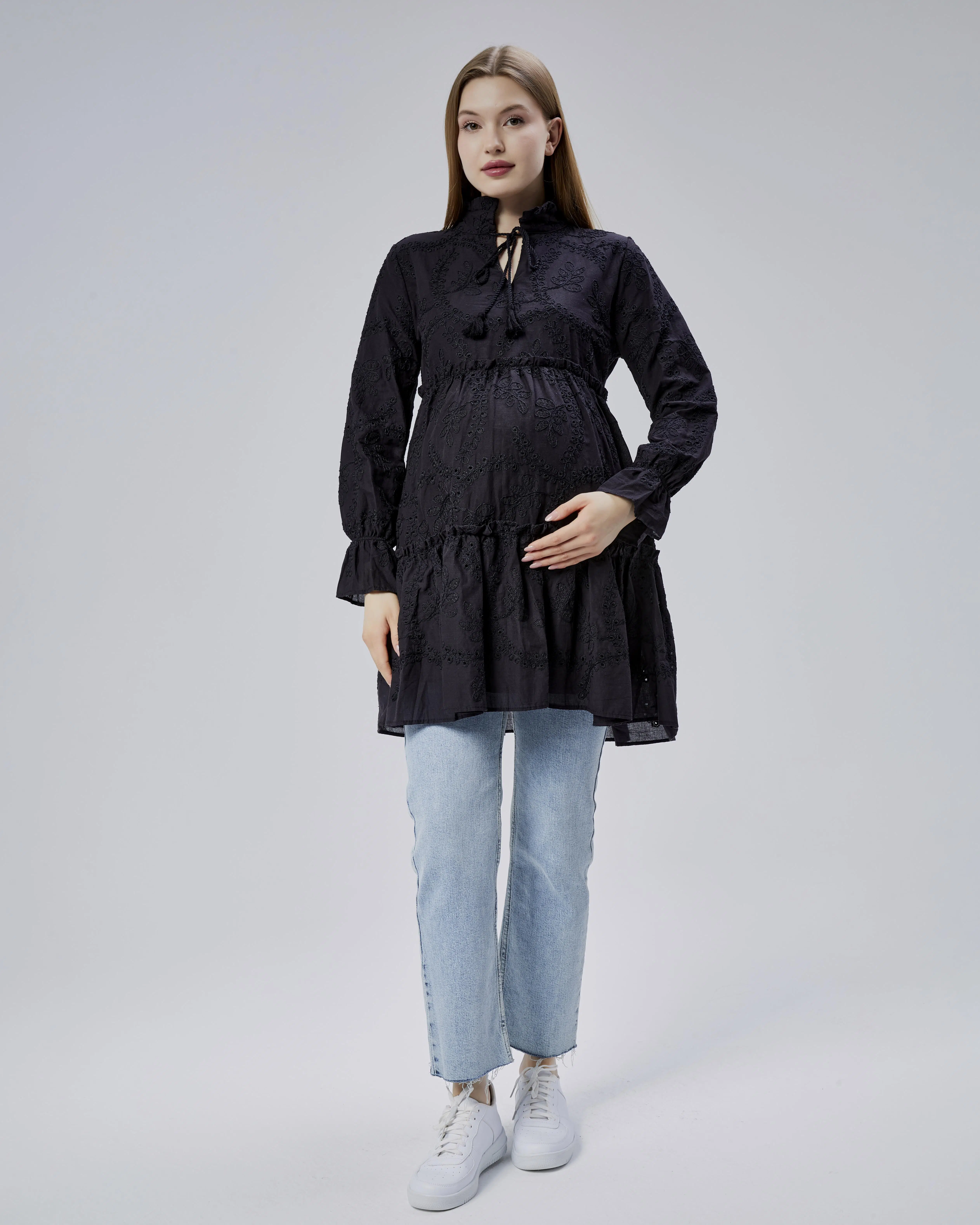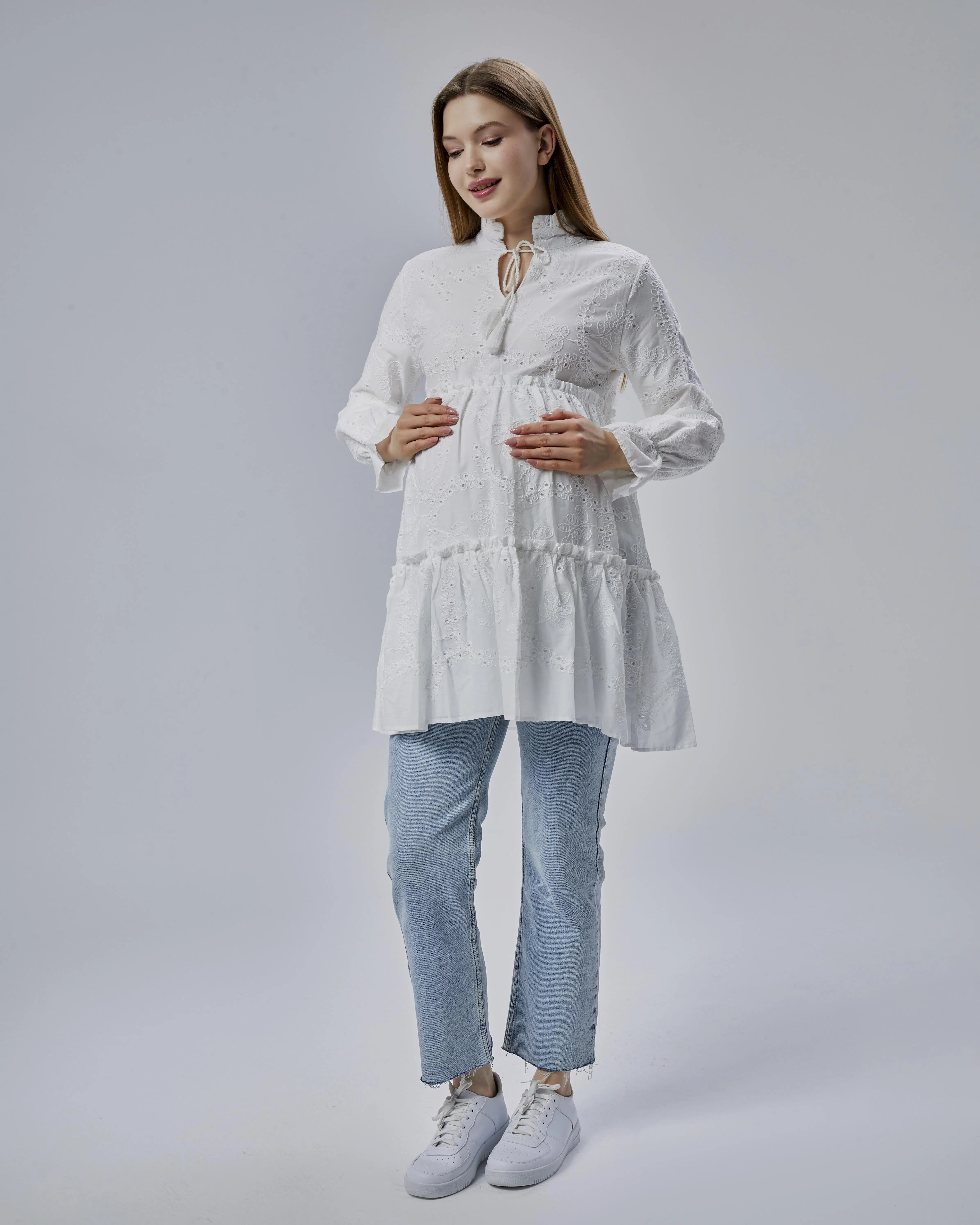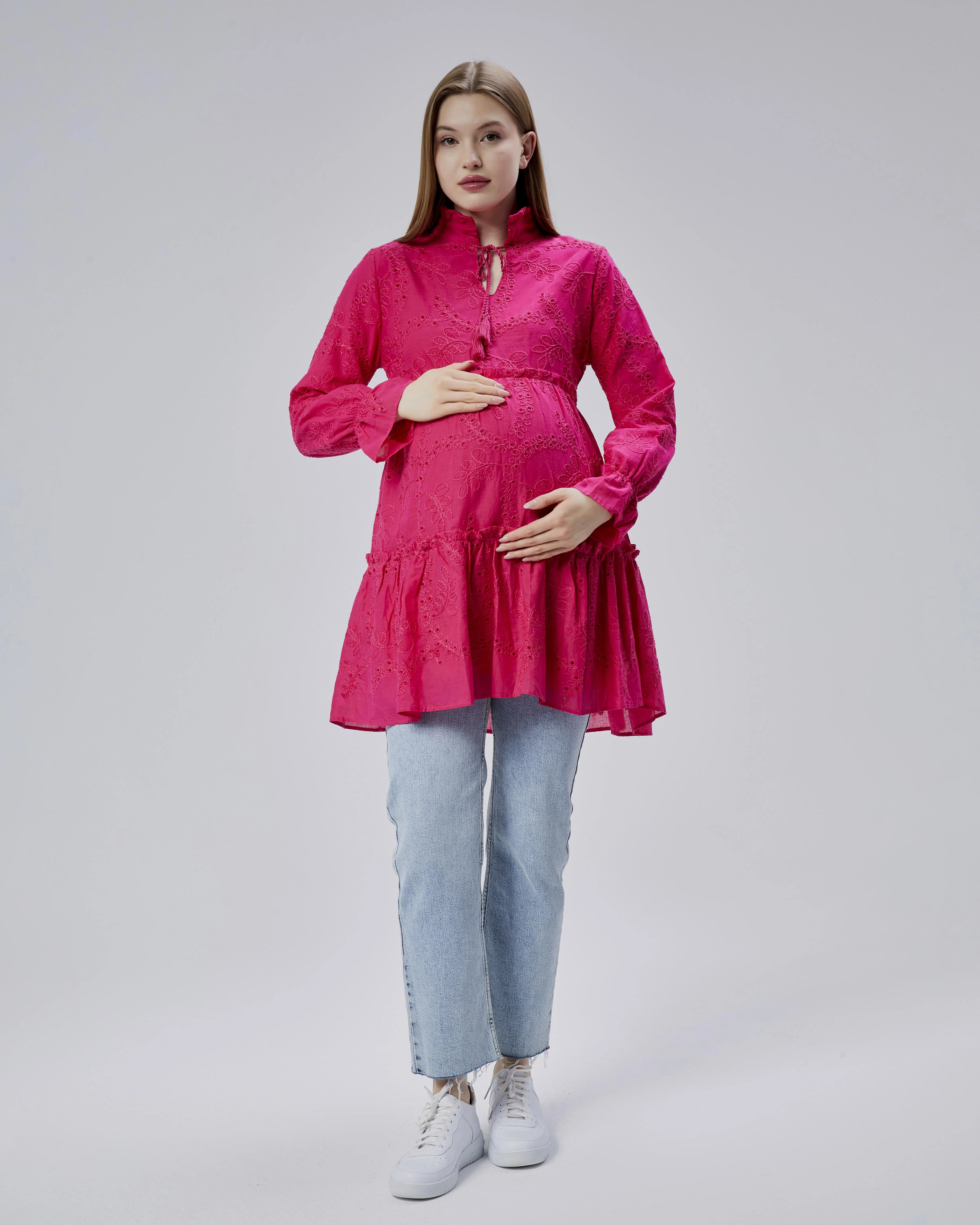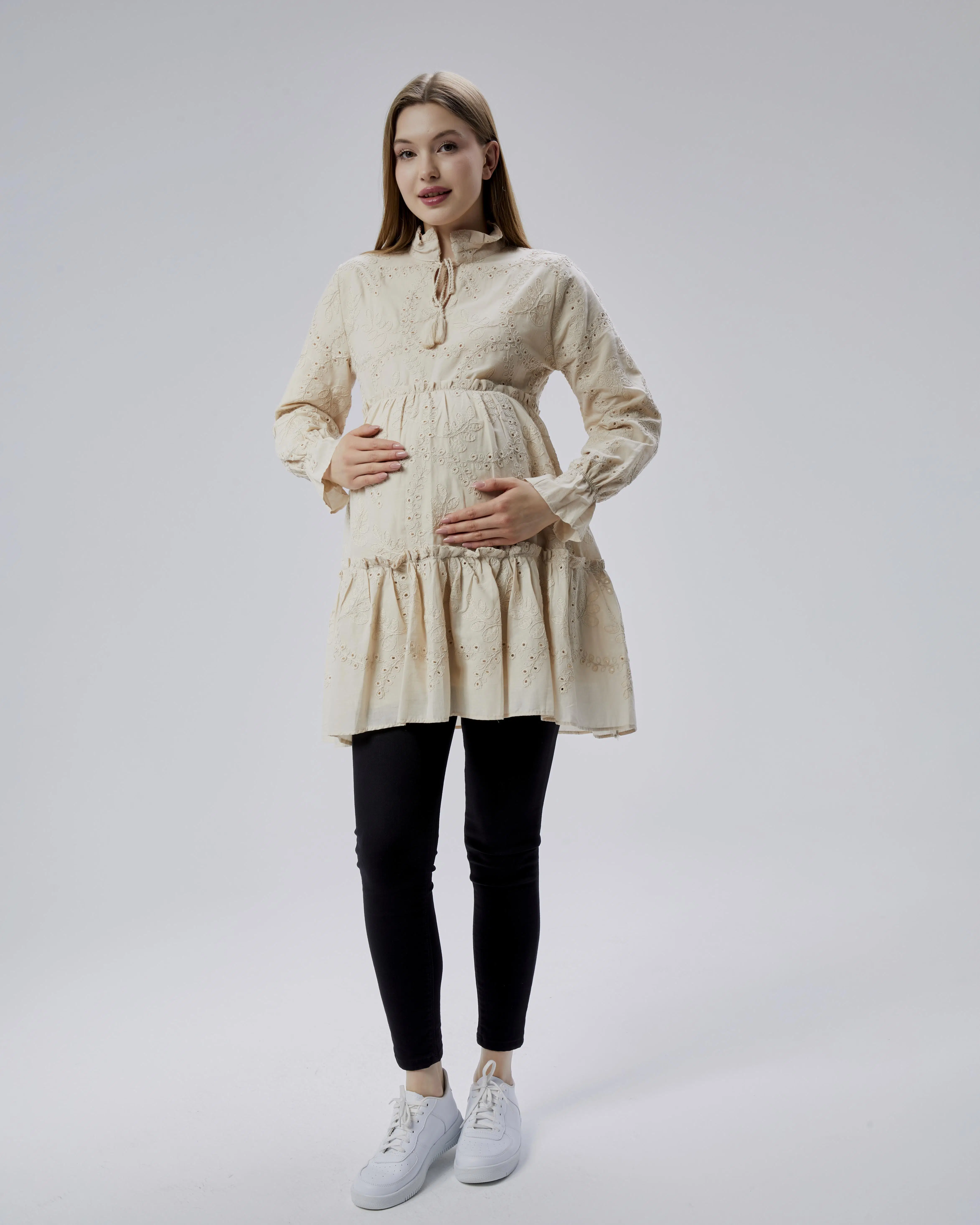 | Etiketler | 50877-Brode Fırfırlı Hakim Yaka Hamile Gömlek-Tunik |