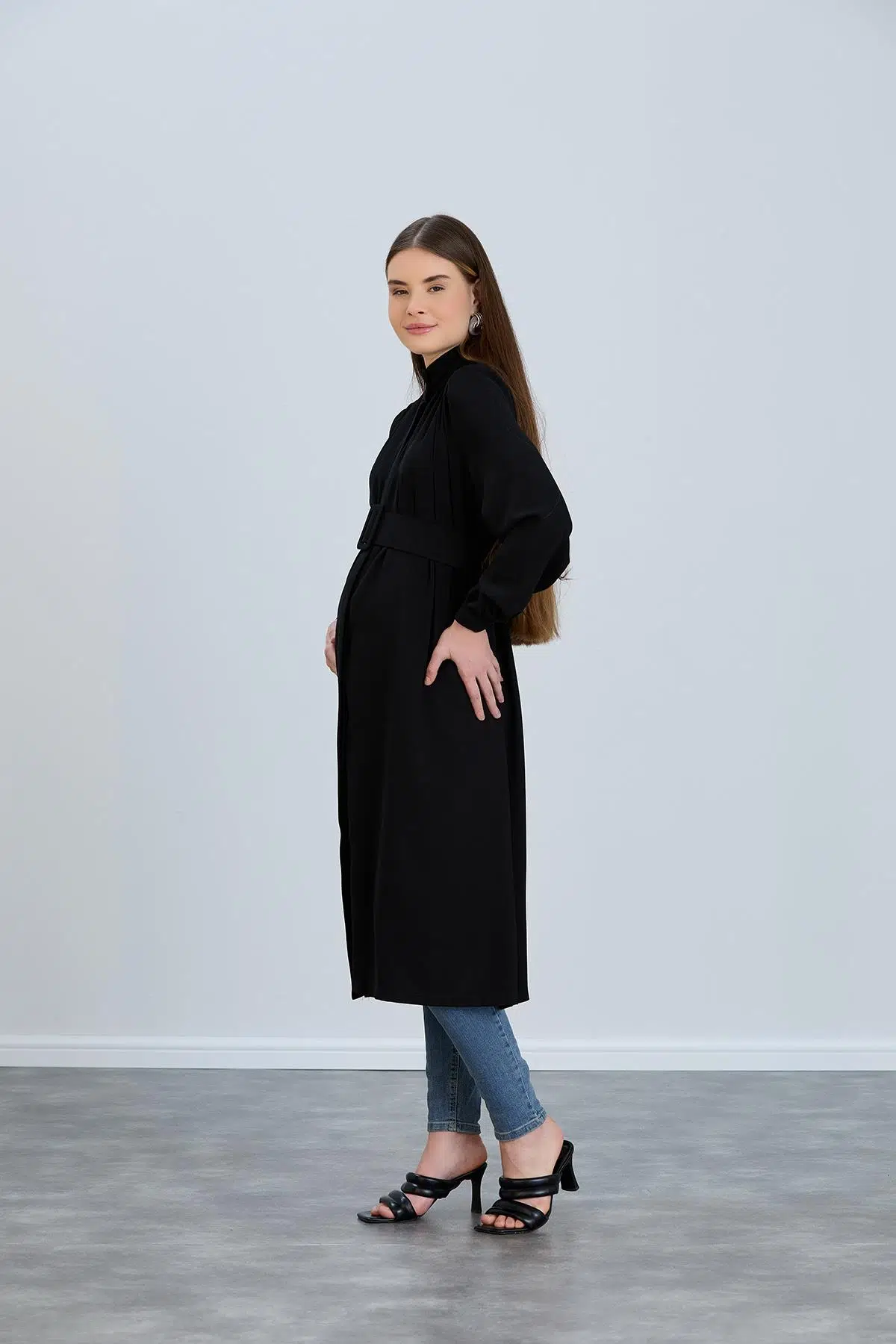 Pileli Omuz Kemer Detaylı Hamile Giy-Çık Tunik