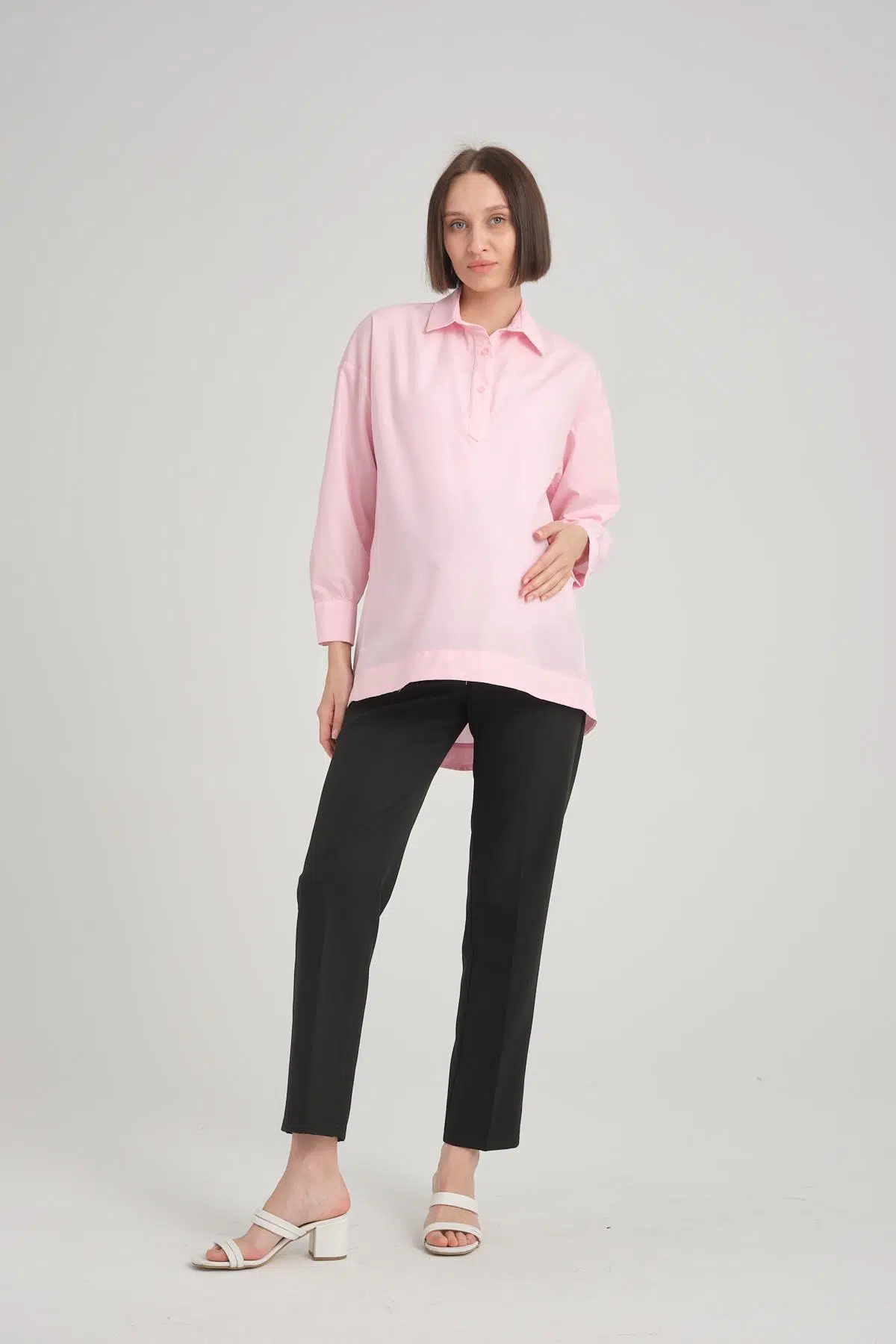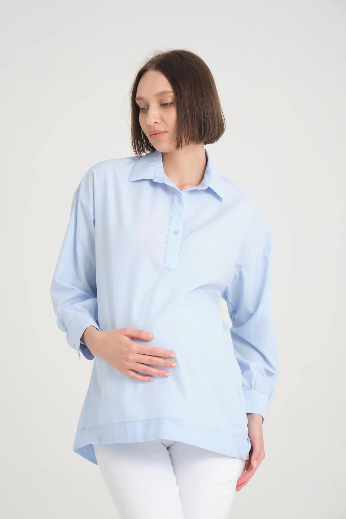 pamuklu yazlık kumaş yarım patlı yaka kesimi ile zarif bir görünüm aldı, çalışan anne adayları için ideal bir kullanım sağlayan model, rahat bir kesime sahiptir, emzirme dönemi için uygun, hamilelik süresince rahat bir kullanım sağlıyor...